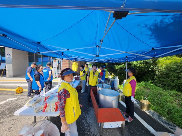30도를 웃도는 무더운 더위 속에 진행된 이날 봉사 현장에는 연화마을 사회적협동조합 실버봉사단과 공도 라온요양원 봉사단, 연화마을 직원 등이 참석해 즉석에서 음식을 만들었으며 100여 명의 어르신들에게 우동과 떡, 과일, 음료 등을 제공했다.