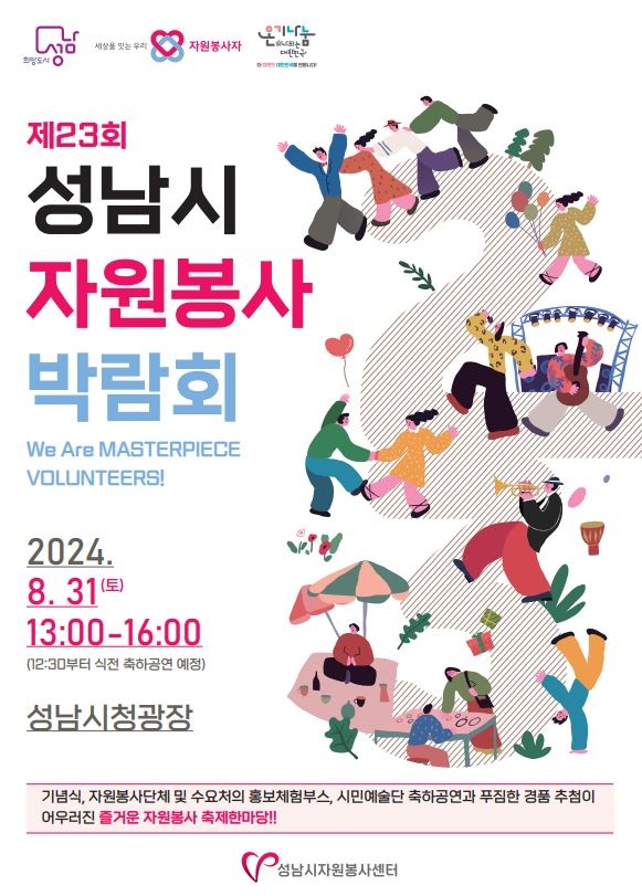 [경인신문=김중택 기자]성남시 (시장 신상진) 지원으로 8월 31일(토) 오후 1시, 성남시청광장에서 ‘제23회 성남시자원봉사박람회’가 열린다.