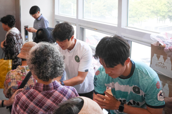 이번 나눔 행사에는 이관우 감독, 김영남 선수가 상록구 노인복지관을 방문하신 어르신들께 사랑의 물을 나누며 덕담과 건강 안부를 나누기도 했다.