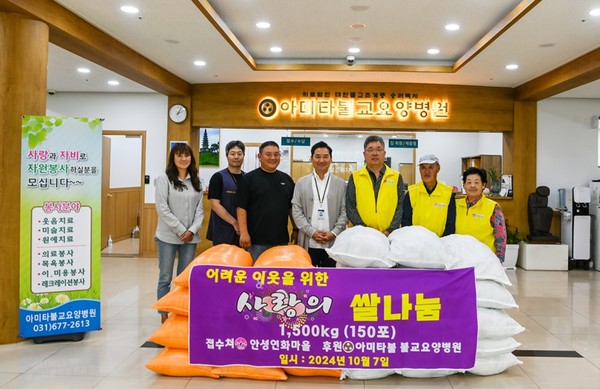 아미타불교요양병원은 지난해에도 안성시 노인복지관과 연화마을 등을 통해 약 4000kg의 백미를 전달한 바 있으며 이외에도 다양한 방법으로 나눔을 실천하고 있어 귀감이 되고 있다.