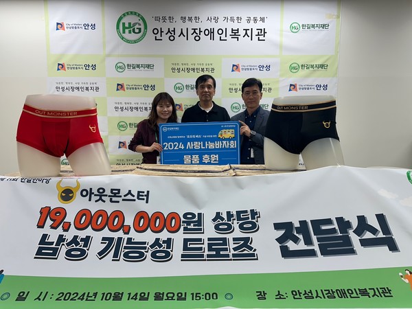 앞서, 안성시장애인복지관에서는 아웃몬스터와의 후원품 전달식이 있었다. 이날 전달식에는 김제은 아웃몬스터 대표 겸 안성시조경협회장, 김덕수 안성시장애인복지관장, 한미정 한길학교 교무기획부장 등이 참석했다. 아웃몬스터는 이날 1,900만 원 상당의 남성용 기능성 드로즈를 후원했다.