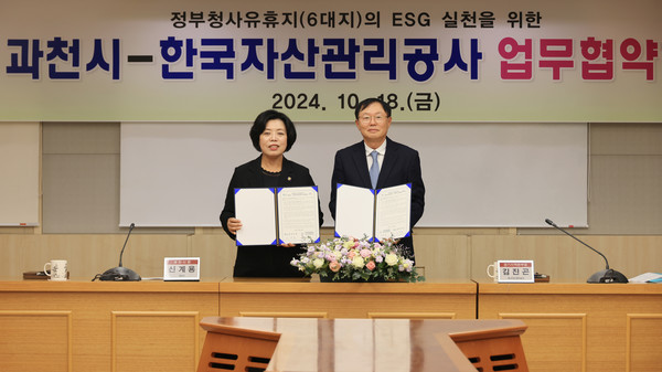 과천시와 한국자산관리공사가 지난 18일 정부과천청사 유휴지(6대지)에 대해 ‘ESG 실천을 위한 업무협약’을 체결했다.