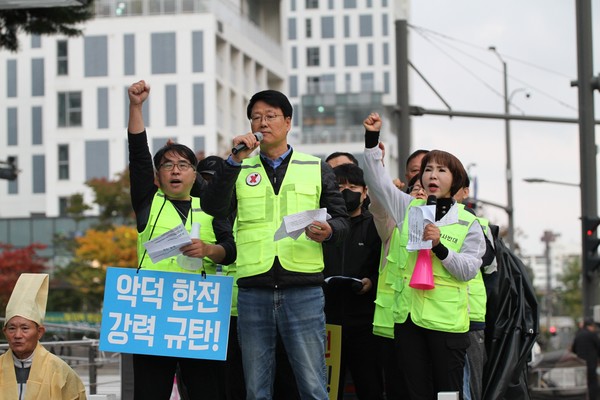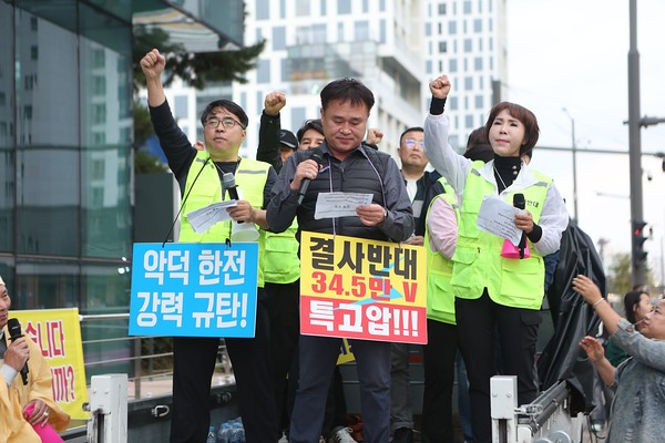 특고압선 매립을 강행하려 한다며 크게 반발했다.
