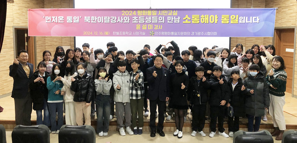 [ 경인신문= 김민석 기자] 민주평화통일자문회의 광주시협의회(회장 이상원)는 2024.12.16(월)~12.17(화) 탄벌초등학교에서 '먼저 온 통일, 이탈주민 강사와 초등생들의 만남'이라는 주제로 2024 평화통일 시민교실을 개최하였다.
