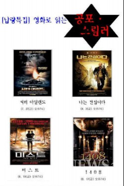 이번 영화프로그램에는 공포․스릴러 소설을 영화화한 작품들로, 데니스 루헤인의 ‘살인자들의 섬’을 영화화한 <셔터 아일랜드>, 리처드 매드슨의 작품을 바탕으로 한 <나는 전설이다>, 원작이 가장 많이 영화화된 작가로 유명한 스티븐 킹의 ‘안개’와 ‘1408’이 영화로 각색된 <미스트>와 <1408>이 상영될 예정이다.