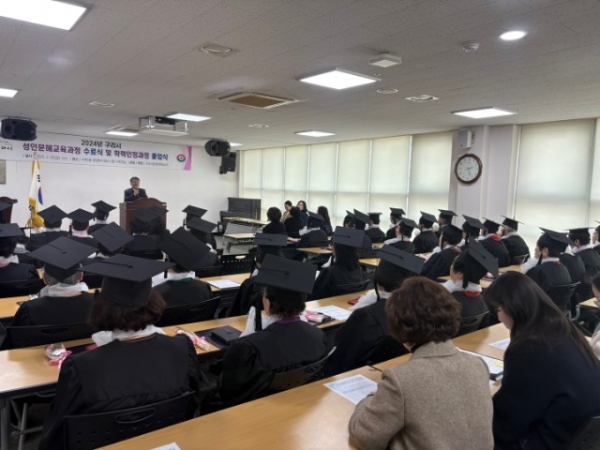 2024년 성인문해교육은 학습자의 학습 수준에 맞춰 초급, 중급, 학력인정3단계, 중등예비 등 4개 과정으로 나눠 2024년 3월 18일부터 2025년 2월 21일까지 추진했으며 이 중 교육청 지침을 적용해 66.6% 이상 출석한 45명의 학습자가 교육을 수료했다.