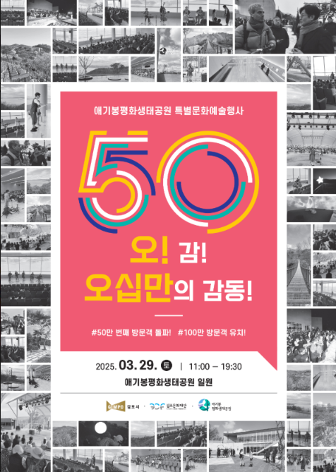 2021년 개관 이후 3년만에 50만을 돌파한 애기봉평화생태공원은 29일 50만 돌파 특별행사를 통해 대한민국 대표 글로벌 관광 브랜드로 성장하는 과정에서 거둔 성과를 기념하고, 시민들과 함께 그 기쁨을 나눌 예정이다. 이날 행사에서는 50만 번째 방문객을 초청해 기념패를 증정하고, 시민들을 대상으로 추첨을 통해 기념 굿즈를 제공하는 이벤트도 진행된다.