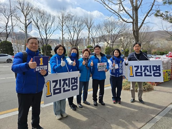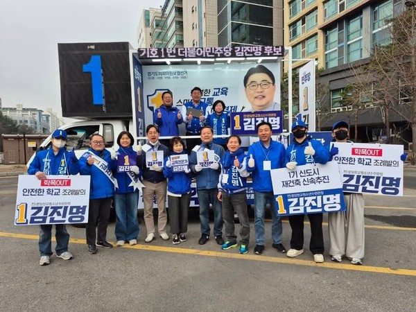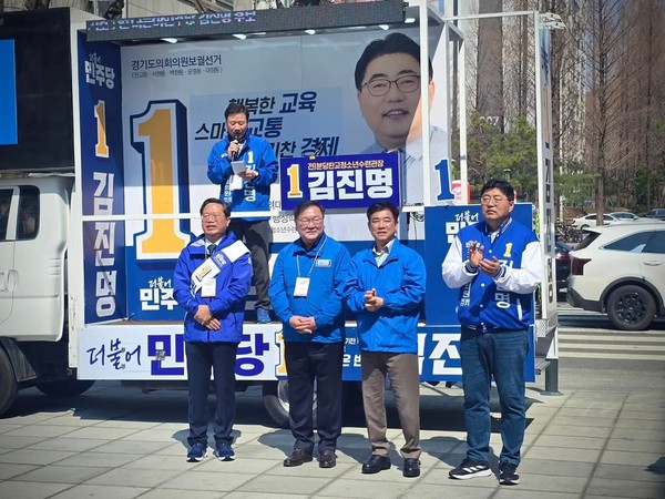 끝으로 성남시 민주당 시도의원들은 피켓을 들고 김진명 후보 지역구를 순회하며 교육전문가 김후보를 선택해 줄것을 주민들께 호소했다.