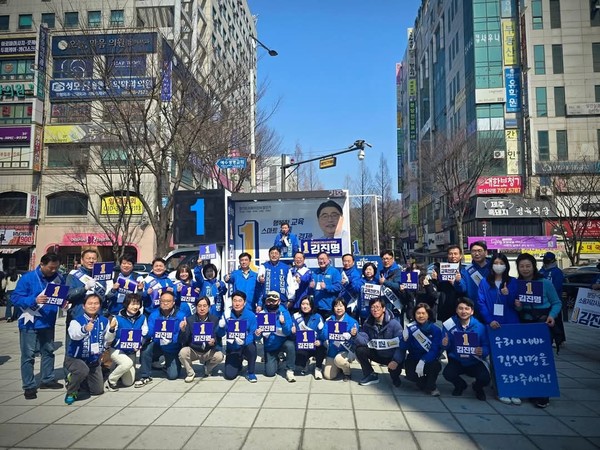 김진명 후보 지원 유세에 나선 김태년 국회의원은 "자랑스러운 분당 시민여러분 다가오는 4월2일 보궐선거에서 유능한 교육전문가 김진명후보를 선택해 달라"면서 "민주당은 원팀으로 뭉쳐 민생과 지역경제를 꼭 일으키겠다"며 "분당 시민의 이름으로 정의를 바로세워달라"고 지지를 소호 했다.
