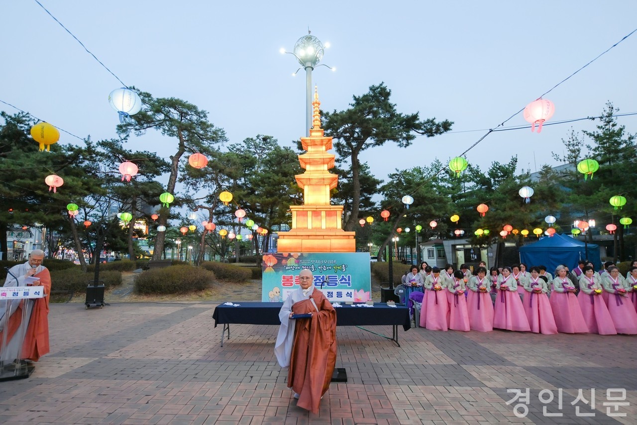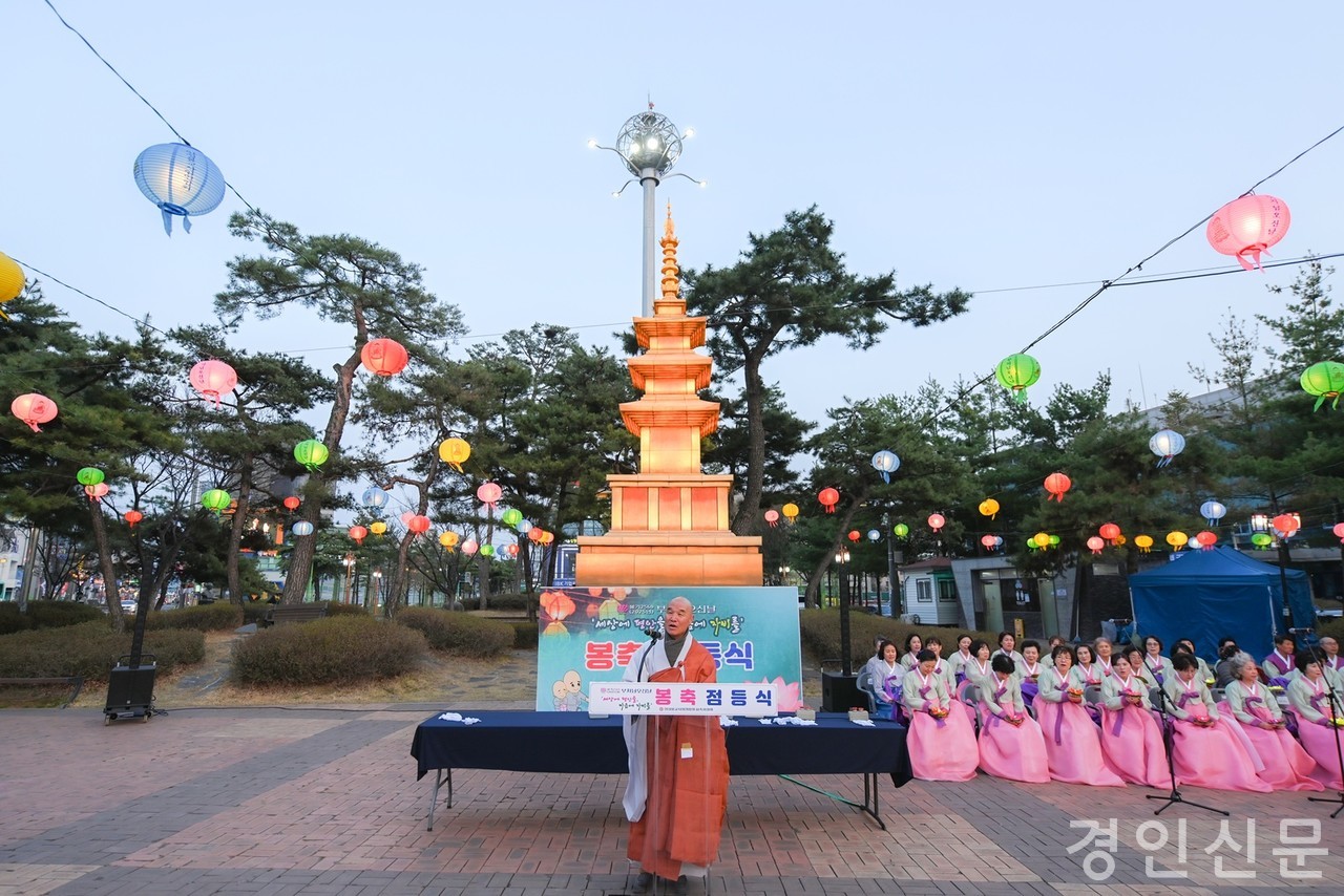 지강 스님은 점등사를 통해 "나라 안팎으로 어지러운 시간이었지만 부처님오신날을 맞아 하나하나 해결되길 바라며, 오늘 봉축탑 점등 행사를 통해 시민 모두가 지친 마음을 위로받고 세상에 평안을 그리고 마음에는 자비가 가득하길 발원한다"며 위로와 소원을 발원했다.