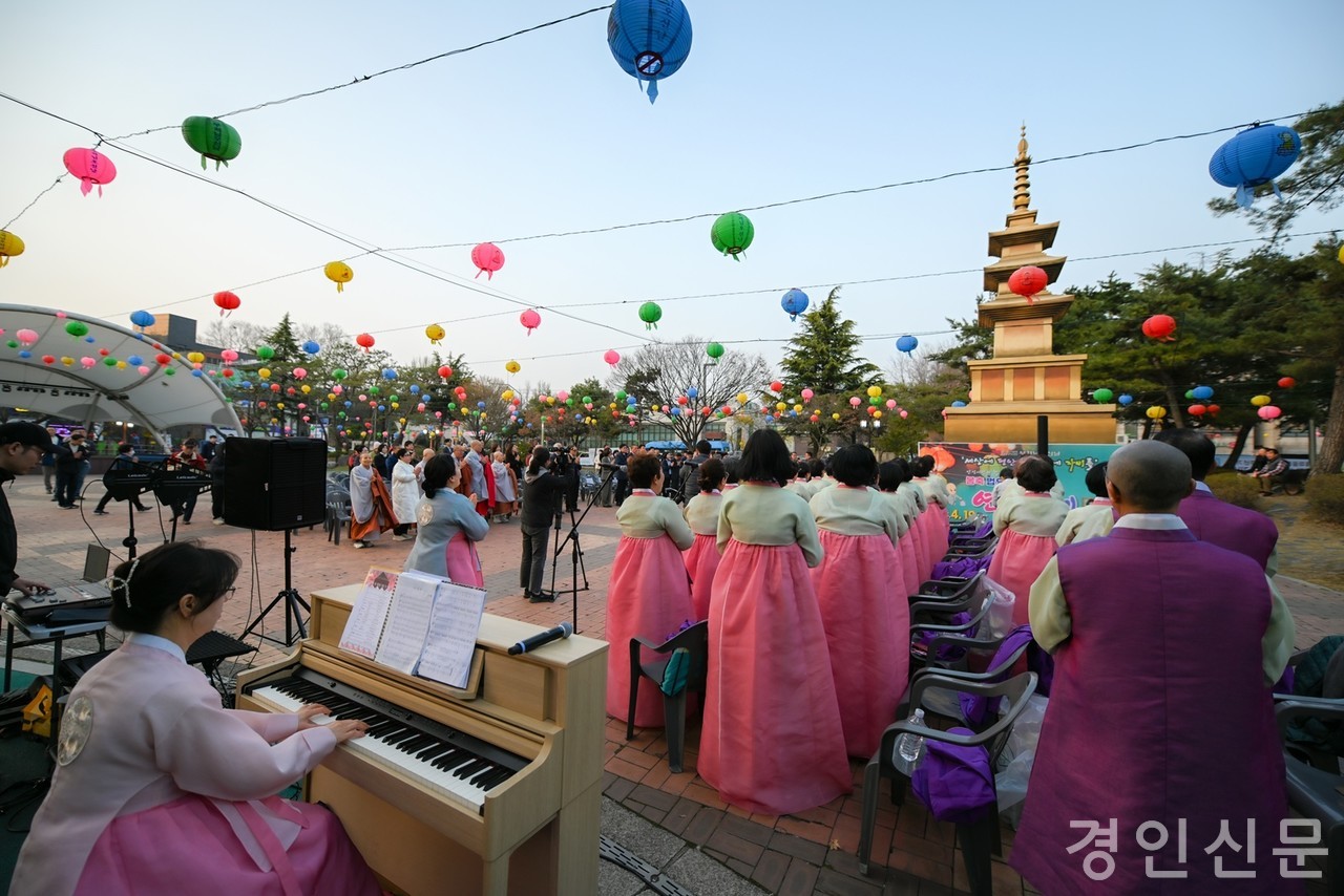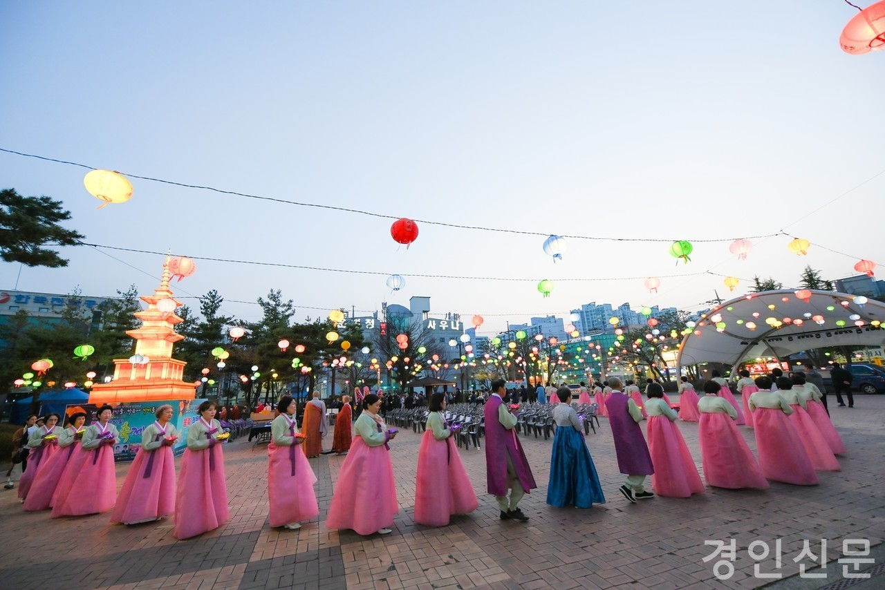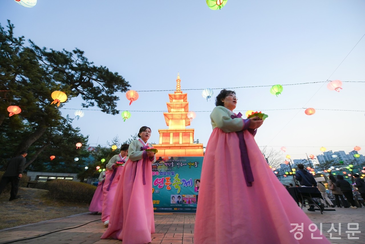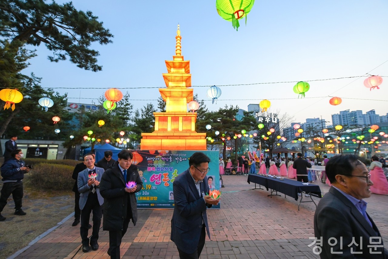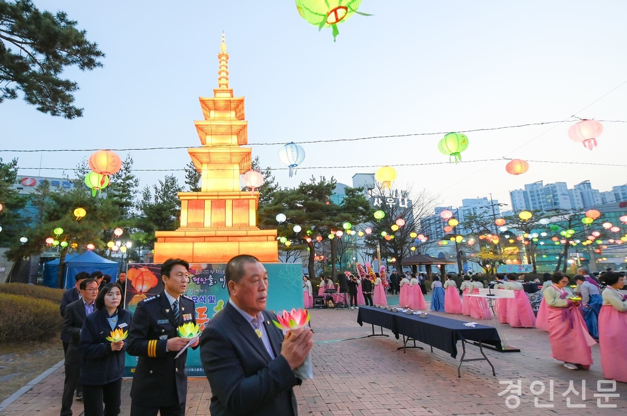 마지막으로 이날 함께 자리한 스님들과 기관사회 단체장, 그리고 시민들은 연합회에서 준비한 연꽃 등을 들고 두 손을 모아 탑돌이를 하며 가정의 안녕과 행복을 기원했다.