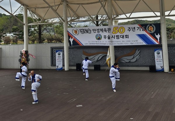 이날 시범대회는 안성체육관 개관 50주년을 맞아 정통무예인 정도술의 매력과 우수성을 널리 알리고 전국 정도술대회 안성개최를 위한 시범대회로 정도술의 위상을 높이기 위해 마련됐다.