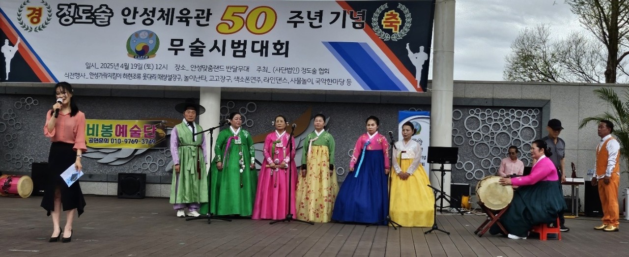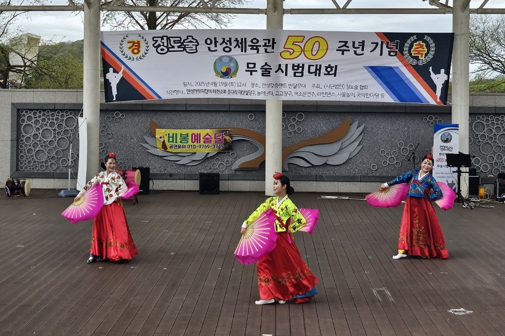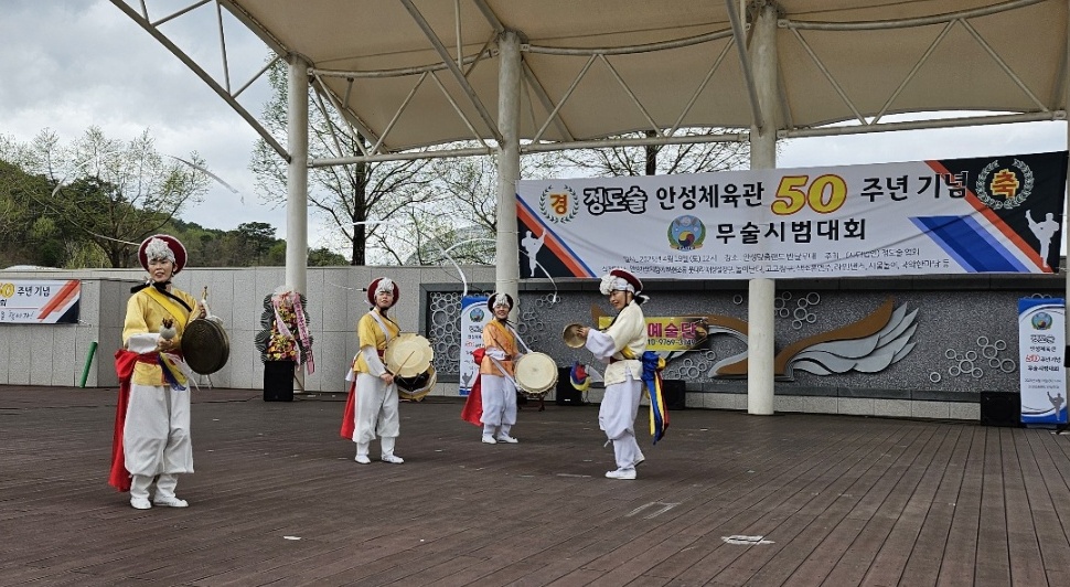 [ 경인신문= 박우열 선임기자] 사단법인 정도술협회(대표 안도규)가 주최하고 정도술 안성체육관(관장 조정묵)이 주관한 무술 시범대회가 지난 19일 안성맞춤랜드 반달 무대에서 개최됐다.