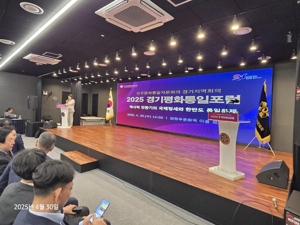 [ 경인신문= 김현수 기자] 민주평화통일 경기지역회의가 주관하는 ‘2025 경기평화통일포럼’이 30일 의정부문화역 이음 홀에서 홍승표 경기부의장, 김동근 의정부시장, 조진구 포럼위원장, 조금석 의정부협의회장 등 31개 시,군 협의회장, 이재승 청년위원장 등 분과위원장, 평통자문위원과 시민 등 200명이 참석한 가운데 열렸다.