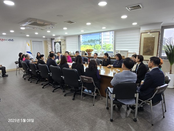 [ 경인신문= 김현수 기자] 민주평화통일자문회의 안산시협의회 (부설 통일 대학 총 동문회)특별 모금 전달 식이 안산시 사장실에서 있었다.