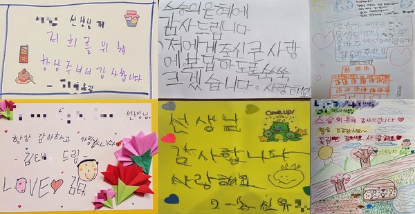 지난 7일부터 11일까지 아이들과 학부모들은 그림, 편지, 삼행시, 카드 쓰기 중 한가지를 골라 사진을 찍은 후 학교에 제출했다.