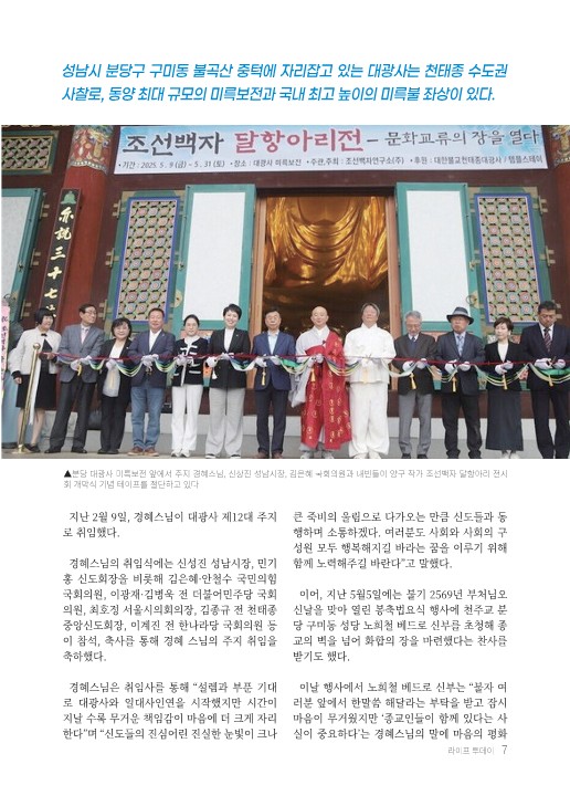 "열린도량 운영, 불국토 건설의 꿈을 이루겠다." 경인신문 기자 insky8115@naver.com 다른기사 보기 저작권자 © 경인신문 무단전재 및 재배포 금지 당신만 안 본 뉴스 “안성시는 도심 정책 전면 재검토하라!” 안성시 전국 최초 식판 세척 사업, 왜 ‘최악의 실패 사례’가 됐나? (사)불교정중연등종 연등사, 장애인복지관에 825만원 상당 생필품 기부 “안성시는 도심 정책 전면 재검토하라!” 댓글삭제 삭제한 댓글은 다시 복구할 수 없습니다. 그래도 삭제하시겠습니까? 비밀번호 닫기 기사 댓글 0 댓글 접기 로그인 후 이용 가능합니다. 댓글 내용입력 비회원 로그인 이름 비밀번호 댓글 내용입력 댓글쓰기 계정을 선택하시면 로그인·계정인증을 통해 댓글을 남기실 수 있습니다. 회원 로그인 비회원 글쓰기 이름 비밀번호 자동등록방지 로그인 옵션 창닫기 주요기사 [기자수첩]절차 흠결이 만든 ‘불신의 복직’, 청소년 기관의 신뢰는 어디서부터 복원해야 하나 (사)불교정중연등종 연등사, 장애인복지관에 825만원 상당 생필품 기부 임태희 교육감,“한국어로 문화와 세계를 잇는 글로벌 교육환경 만들것” 경기도의회 정하용 의원, 신갈천 산책로 진입경사로 설치 이끌어… 주민 보행편의 대폭 개선 전의이씨 후손들로부터 기증받은 이덕수 초상 유복본·관복본 보존 처리 후 ‘중국에서 그려 온 초상使行肖像’ 무장애 특별기획전에서 최초 공개 상상을 현실로 만드는 특별한 공예 여정, 경기상상캠퍼스 상상실험실 교육 12월까지 연장