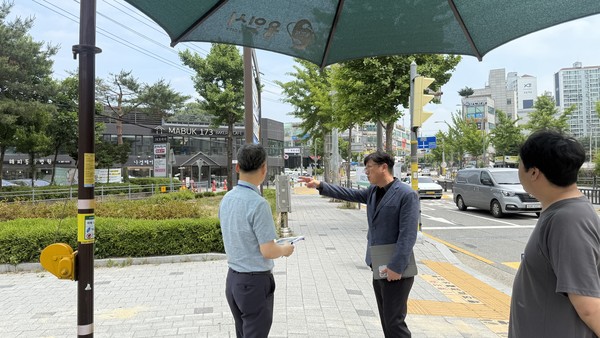 현장 점검 중 김 의원은 마북동 169-1번지(교동마을 현대필그린아파트 앞) 내 설치된 교통섬에 대해 “현재 위치가 불합리하여 차량 흐름을 방해하고 사고 위험을 높이고 있다”며, 해당 구간의 구조 개선이 시급하다고 강조했다.