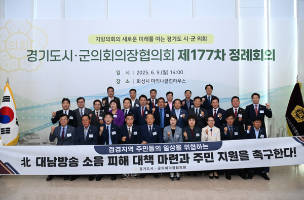 [경인신문= 이광일 기자] 김포시의회는 9일 화성 전곡항 마리나클럽하우스에서 열린 제177차 경기도시・군의회의장협의회 정례회의에 ‘北 대남방송 소음 피해 대응 및 주민지원 촉구 건의안’을 제안해 협의회에서 채택됐다고 밝혔다.