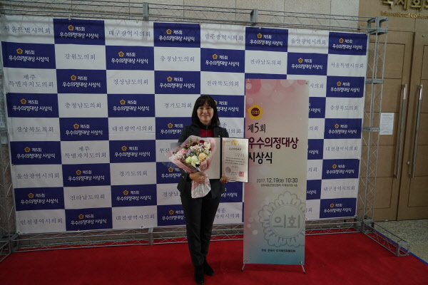 우수의정대상은 전국시도의회의장협의회에서 전국 광역의회의원 중 집행부 견제와 정책대안 제시를 위한 대집행부질문과 주민 행복제고를 위한 입법활동 등 전반적인 의정활동에 대해 엄격한 심사를 거쳐 지역주민들의 삶의 질 향상과 지역 및 지방의회 발전에 기여한 공이 큰 의원들을 대상으로 수여하는 영예로운 상이다.