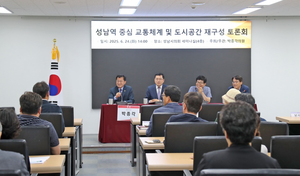 성남시 박종각 시의원(이매1·2동, 삼평동)은 2025년 6월 24일(화), 성남시의회 4층 회의실에서 「성남역 중심 교통체계 및 도시공간 재구성」을 주제로 정책토론회를 개최했다.