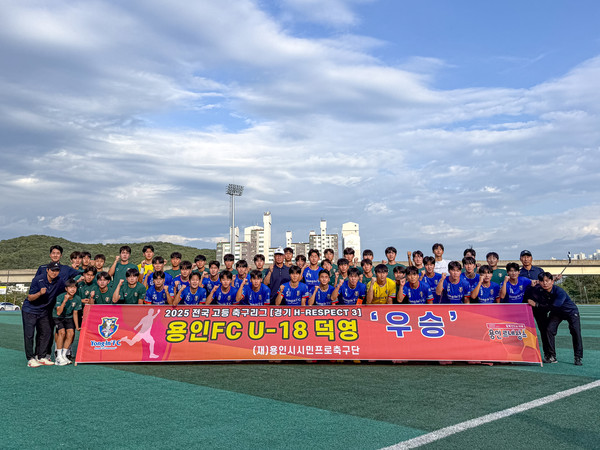 [ 경인신문= 최철호 기자] 창단을 준비 중인 용인시민프로축구단 산하 유스팀 덕영U18이 전국고등축구리그 경기 3권역에서 조기 우승을 확정짓는 쾌거를 이뤘다. 이번 성과로 덕영U18은 전국고등축구리그 왕중왕전 진출권을 획득하며, 용인 축구의 미래를 전국 무대에 힘있게 알렸다.