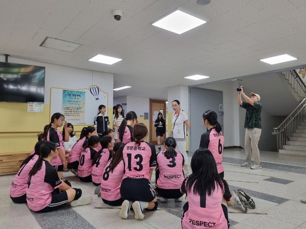 폭염경보가 내려질 정도의 무더운 날씨에도 영문중학교 피구부 학생들은 밝은 얼굴로 경기에 임했다. 전날 야외 훈련이 어려운 상황에서도 김영신 교장은 탁구대를 옮겨 실내 연습 공간을 마련하고, “다치지 말고 즐겁게 참여하라”며 따뜻한 격려를 아끼지 않았다.