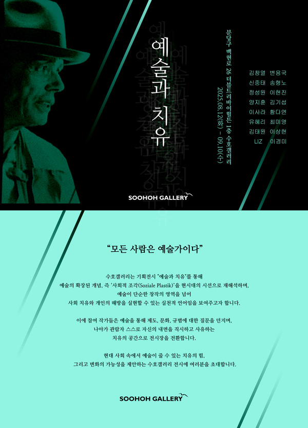 수호갤러리의 이번 전시는 억압된 감각과 언어를 해방시키는 탈주의 장이자, 예술을 통해 새로운 감정과 사유가 생성되는 감각의 재배치를 시도하였다. 자연의 빛과 소리, 영상의 흐름 속에서 관람객은 정적인 감상을 넘어 치유적 경험의 주체로 전환되며 예술은 도피가 아닌 회복의 통로가 된다. 감각을 되찾고 나를 돌아보며 세상과 다시 연결되는 이 탈주의 길 위에서, 우리는 어디로 가고 있는가에 대한 깨달음과 함께 각자의 삶을 감각하고 다시금 깊이 사유하기를 바라며 수호갤러리 특별기획전 <예술과 치유 2025>에 초대한다고 전하였다.