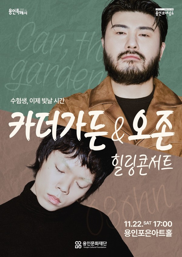 (재)용인문화재단(이사장 이상일)은 2026학년도 대학수학능력시험을 마친 수험생을 위해 오는 11월 22일(금) 용인포은아트홀에서 수험생 힐링 콘서트<카더가든&오존>을 선보이며, 8월 20일에 수험생 대상 선예매 티켓을 오픈할 예정이다.