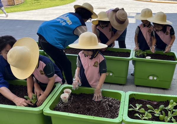 이날 프로그램에서는 양주시 농업기술센터의 전문 강사와 함께 유아들이 배추, 파, 무, 열무 등 다양한 채소를 심고 가꾸는 시간을 가졌다.