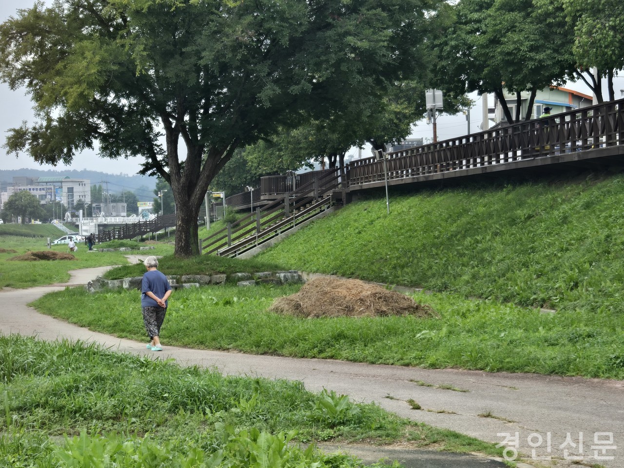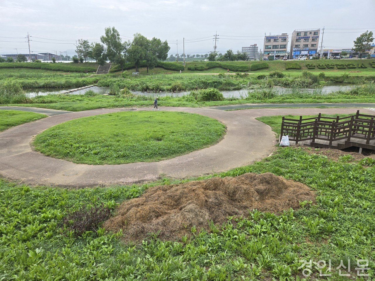 [ 경인신문= 박우열 기자] 안성시가 안성천 산책로 주변에 제초작업 후 발생한 잔재물을 치우지 않고 방치해 악취가 발생, 주민들의 불편이 이어지고 있다.