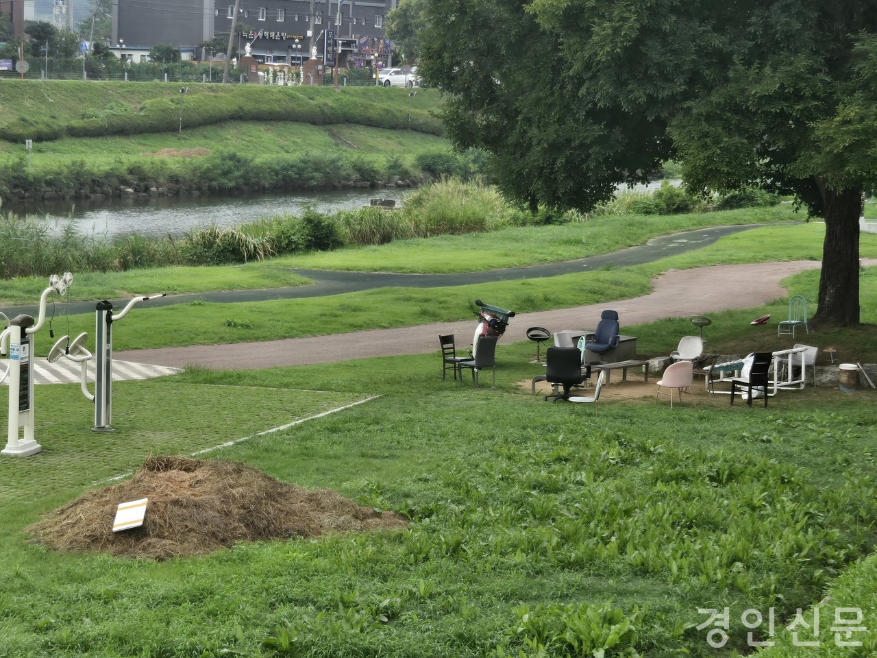 이로 인해 잔재물이 썩으면서 심한 냄새가 퍼져 인근 주택가는 물론 산책로를 찾은 시민들의 눈살을 찌푸리게 하고 있다.
