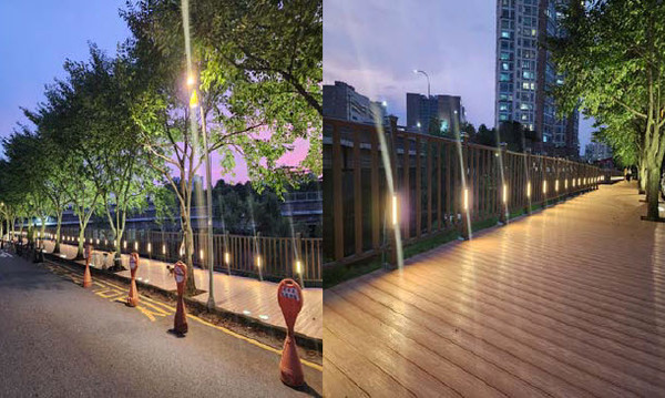 보라중과 나산초 사이의 보행자전용도로는 노후된 가로등을 고효율 LED 조명으로 교체했다. 이 사업은 보행자의 안전을 확보하고 에너지 절감 효과를 기대할 수 있다.