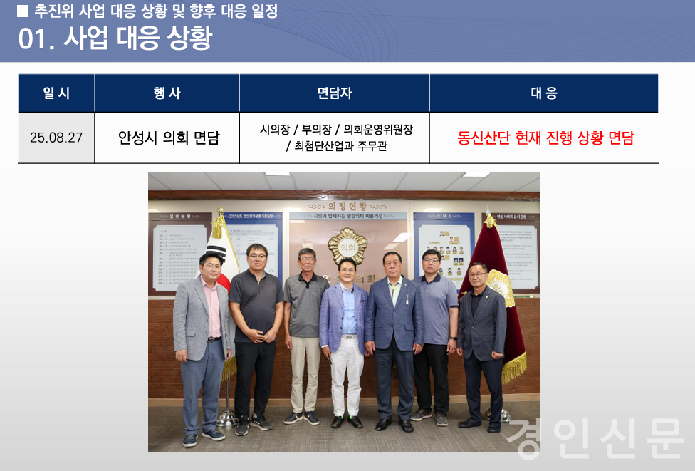 [경인신문= 박우열 기자] 안성시 보개면·금광면 일원에서 추진 중인 동신일반산업단지 조성사업과 관련해 주민들의 권익 보호를 위한 동신일반산업단지 주민비상대책위원회(이하 비대위)가 공식 출범했다.