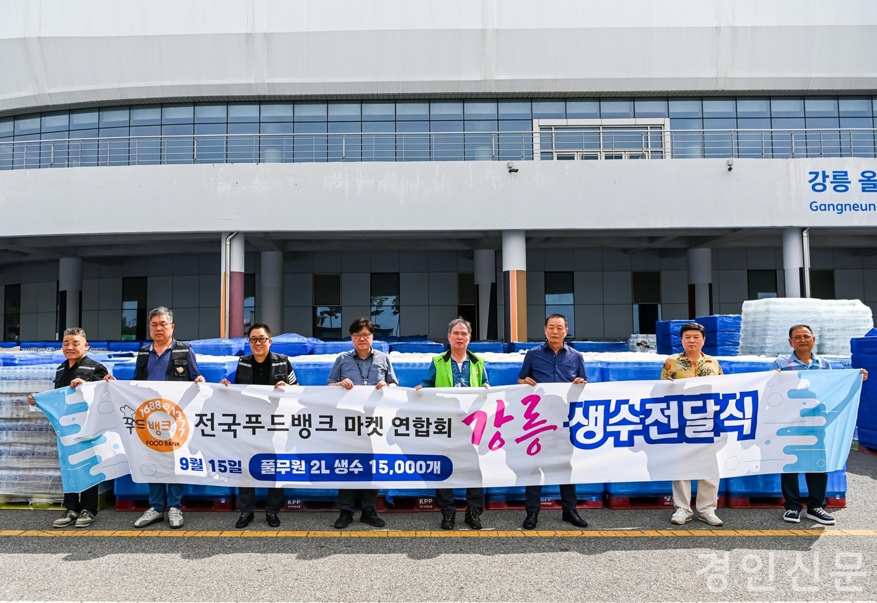 [ 경인신문= 박우열 정혜윤 기자]전국푸드뱅크·마켓 연합회(회장 이재용·안성연화마을 대표)가 가뭄으로 극심한 물 부족을 겪고 있는 강릉시를 돕기 위해 15일 생수 2ℓ 1만 5천 병을 기증했다.