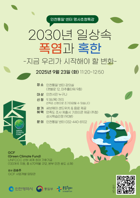 강연 신청은 인천통일플러스센터 누리집에서 가능하며 시민 누구나 무료로 참여할 수 있다.