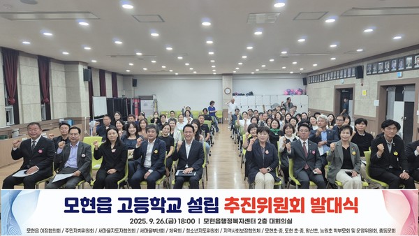 지난 7월 용인시의회 김윤선 의원(도시건설위원장)의 5분 발언을 계기로 시작된 논의가 9월 14일 발기인 모임을 거쳐 마침내‘모현읍 고등학교 설립 추진위원회’ 발대식으로 이어졌다.