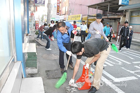 안성시(시장 황은성)는 15일, 민속 최대의 명절인 추석을 앞두고 안성시가지 및 안성천변 등 가구거리 일대를 비롯한 안성시 내 42곳에서 대청소를 실시했다.