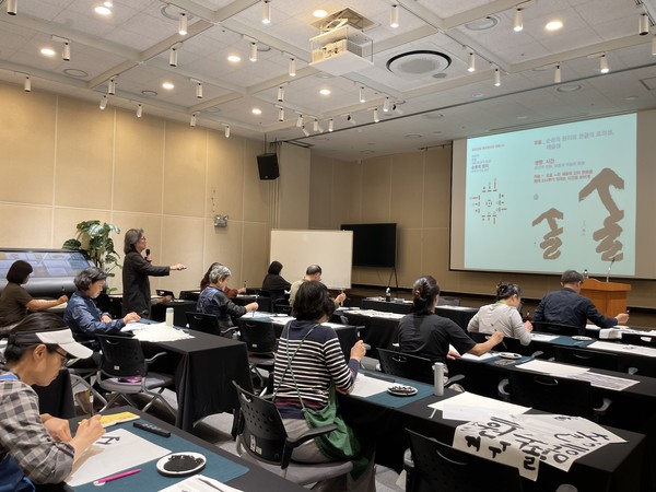 그리고, 지난 10월 16일(목) 특별기획전 《추사, 다시》와 연계한 교육프로그램 〈글자에 담은 내 마음〉을 성공적으로 마무리했다. 이번 프로그램은 전시 참여 작가이자 한글 서예의 거장 강병인 작가를 초청해 진행되었으며, 성인 총 20명이 참여했다.