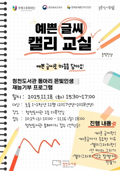 오는 11월 18일 동아리 회원들의 재능기부로 지역 어린이를 대상으로 한 ‘예쁜 글씨 캘리 교실’프로그램이 열릴 예정이다.