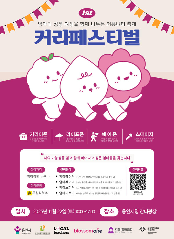 이번 행사는 용인시 사회적경제지원센터의 2025년 협업화 사업을 통해 ㈜블라썸원, 디혜협동조합, 교육보드게임협동조합이 함께 구성한 ‘로컬티쳐스’가 주최하며, 경력단절 여성과 로컬 엄마들의 새로운 시작을 지원하기 위해 마련됐다.