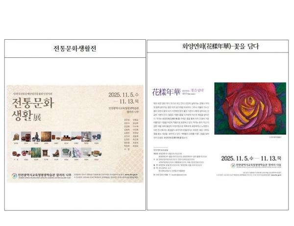전시는 11월 5일(수)부터 13일(목)까지 평생학습관 2층 갤러리 나무와 다솜에서 오전 10시부터 오후 6시까지 무료로 운영되며 일요일과 공휴일은 휴관한다.