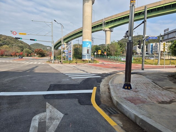신호등·가로등 이설, 가각부 보도 축소 등 통해 협소했던 회전반경 대폭 개선