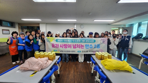 임덕명 동장은 “이번 경로당 어르신과 함께 건강사랑 수제청 만들기 사업에 참여한 만수2동 자원봉사단체 회원과 숭덕여고 학생들에게 감사드린다”며 “앞으로도 더 많은 지역 주민이 참여하는 봉사활동으로 더불어 사는 지역사회를 만들기 위해 노력하겠다”고 말했다.