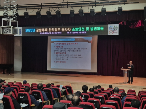 소방 안전 교육에서는 최근 개정된 주요 법령 및 전기차 화재 예방에 관한 내용을 중심으로 공동주택에서 발생할 수 있는 다양한 화재 사례와 소방·피난시설에 대한 시설관리 및 작동법 등을 강의했다.