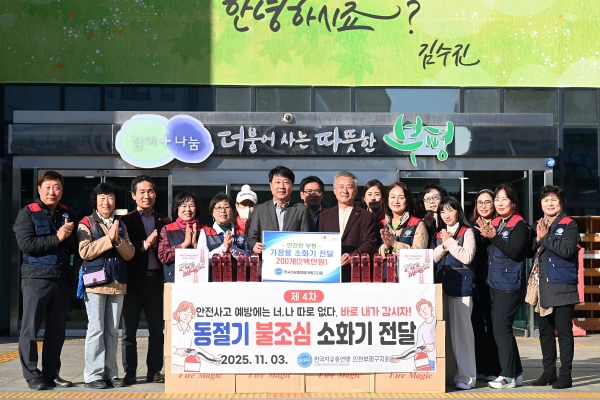 부평구지회는 소방의 날(11월 9일)을 기념해 지난 2022년부터 매년 소화기를 전달해 오고 있으며 이를 지회 특화사업으로 계속 추진하고 있다.
