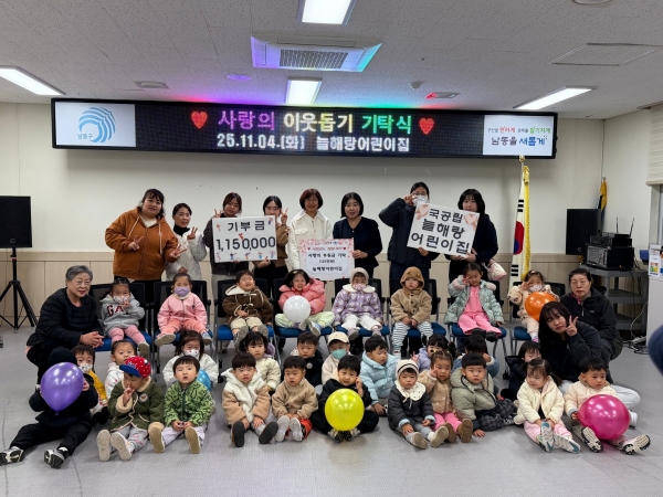 박은경 동장은 “나눔을 통해 이웃사랑을 실천해 주신 국공립 늘해랑어린이집 측에 감사드린다”며 “아이들의 작은 손길로 전달한 사랑이 지역사회에 따뜻한 변화를 일으킬 수 있도록 최선을 다하겠다”고 전했다.