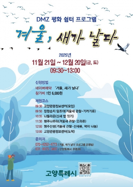 프로그램 신청은 6일부터 ‘겨울, 새가 날다’네이버 예약사이트를 통해 가능하며 선착순으로 모집한다.