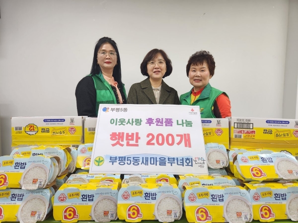 박애영 부평5동장은 “혼자 계시는 어르신 등 식사 준비에 어려움이 많은 분들께 도움이 될 것이”이라며 “지역사회를 더 따뜻하게 하는 나눔 실천에 모범이 돼 주셔서 항상 감사드린다”고 전했다.