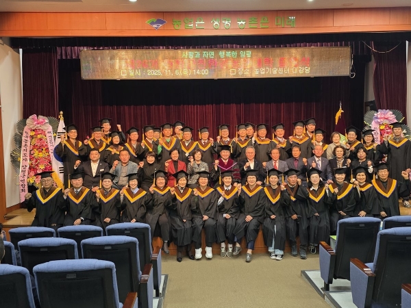 전진선 친환경농업대학장은 “지난 1년의 학업과정을 충실히 이수하고 오늘 졸업식에 함께하게 된 26기 학우님들께 감사와 함께 축하를 드린다”며 격려와 축하의 말을 전하고 “그동안 교육과정을 통해 배웠던 지식과 경험을 활용해 안정적인 농촌 정착과 미래농업 발전을 위해 애써주시길 바란다”고 했다.
